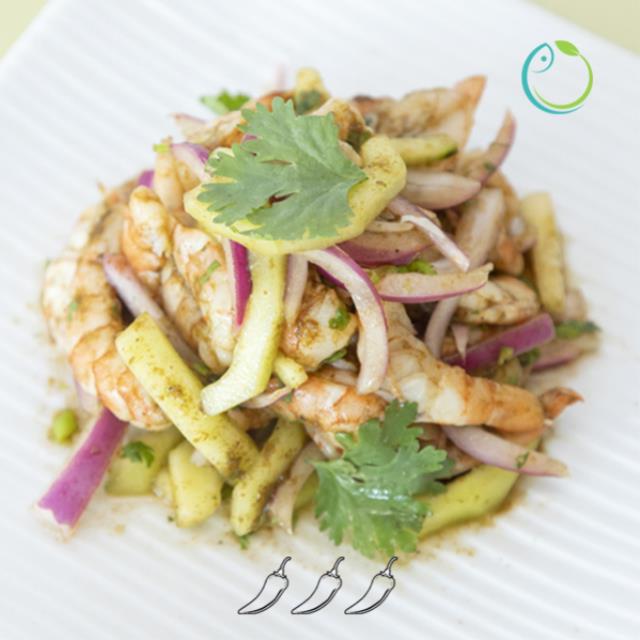 Camarón curtido, cebolla morada, pepino, cilantro y nuestra salsa de chile tatemado. Incluye tostadas y aderezo CL. Picante ALTO