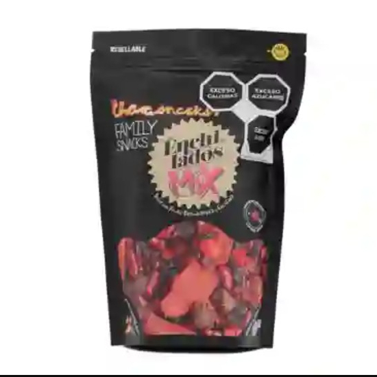 Bolsa con 600 g de dulce con fruta deshidratada y enchilada.