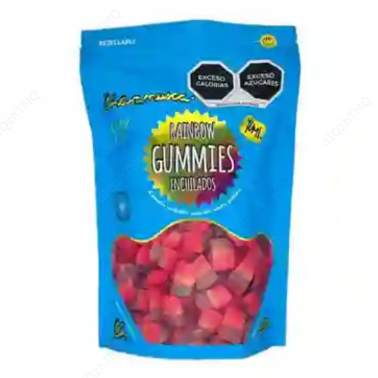 Bolsa con 170 g de caramelo suave y gomitas de dulce enchilado estilo rainbow.
