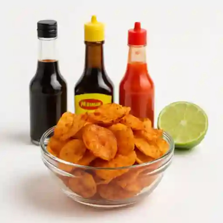 Papas con salsa inglesa, salsa Maggi, salsa botanera y limón.