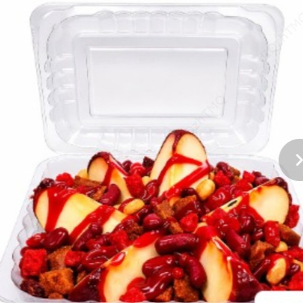 Manzana cubierta con tamarindo preparada, elige 2 toppings y una salsa.
