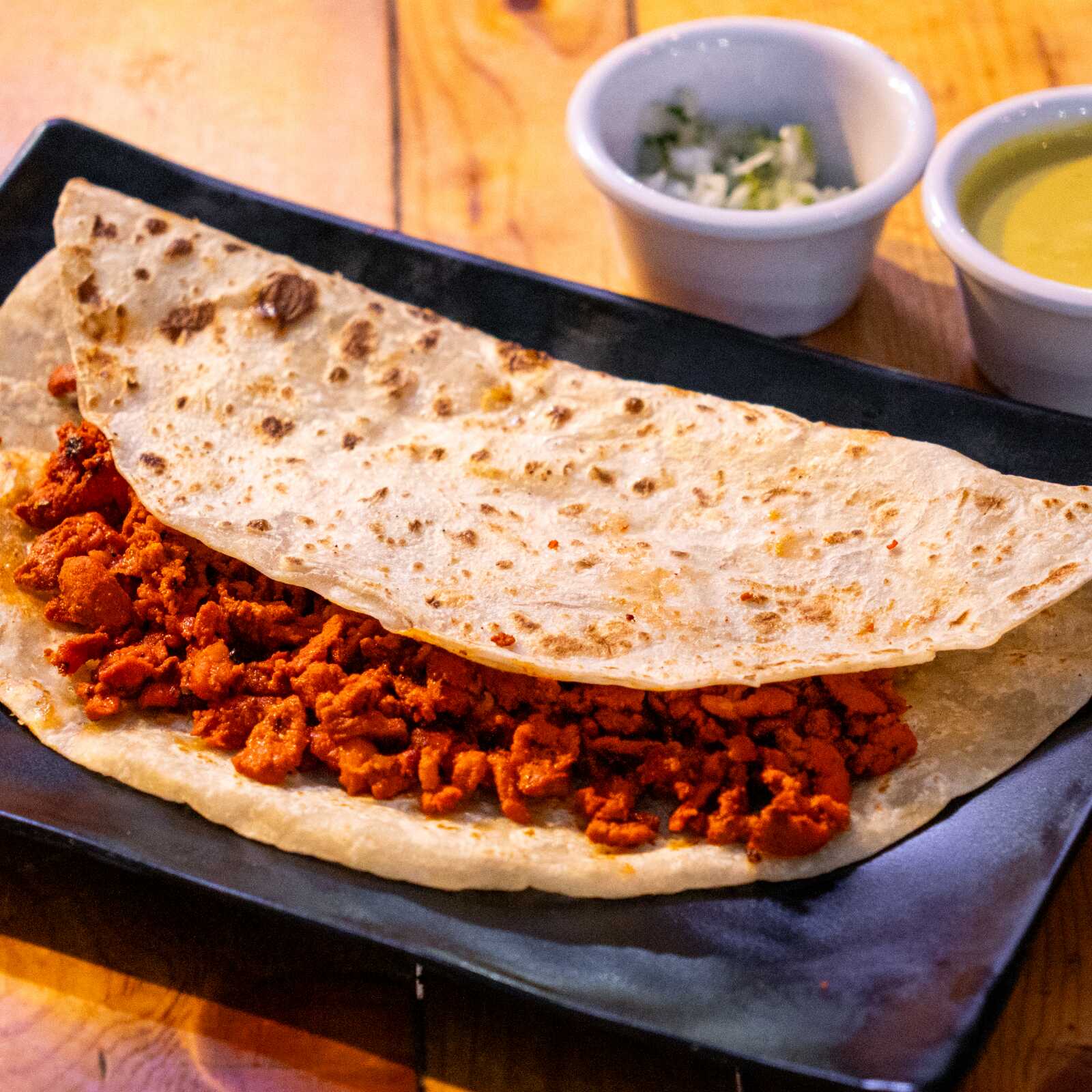 Tortilla de 30 cm rellena de trompo con queso asadero.