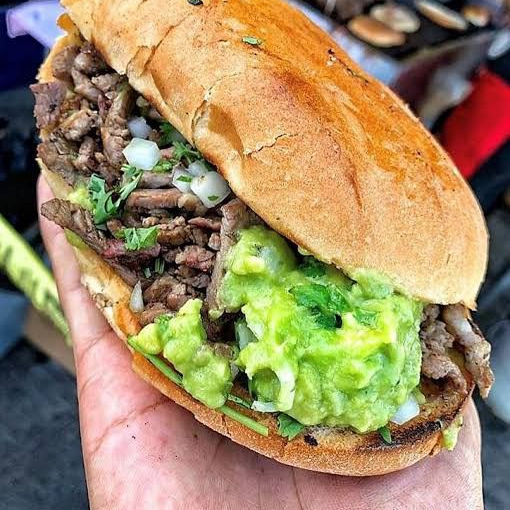 150 gramos de arrachera ,pimiento verde,cebolla morada,queso manchego,aguacate,papas y salsa.