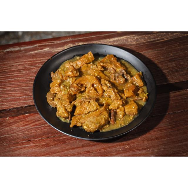 Chicharrón 100% de cachete guisado en nuestra salsa verde casera