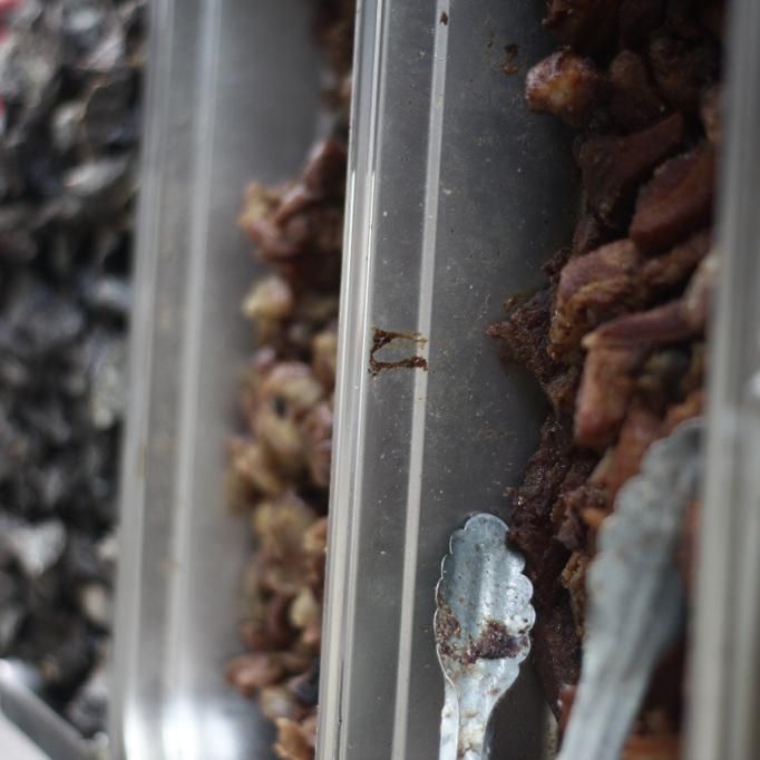 Pulmón de res, cocinado al horno en un caso. Metodo artesanal.