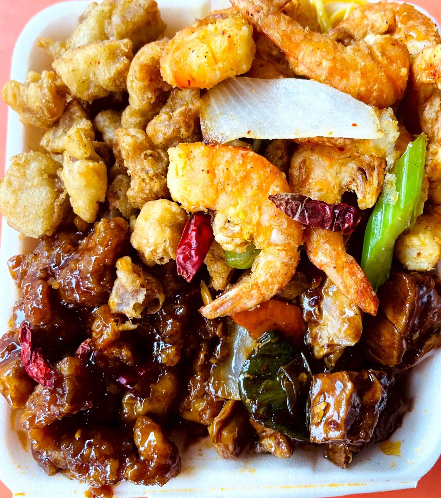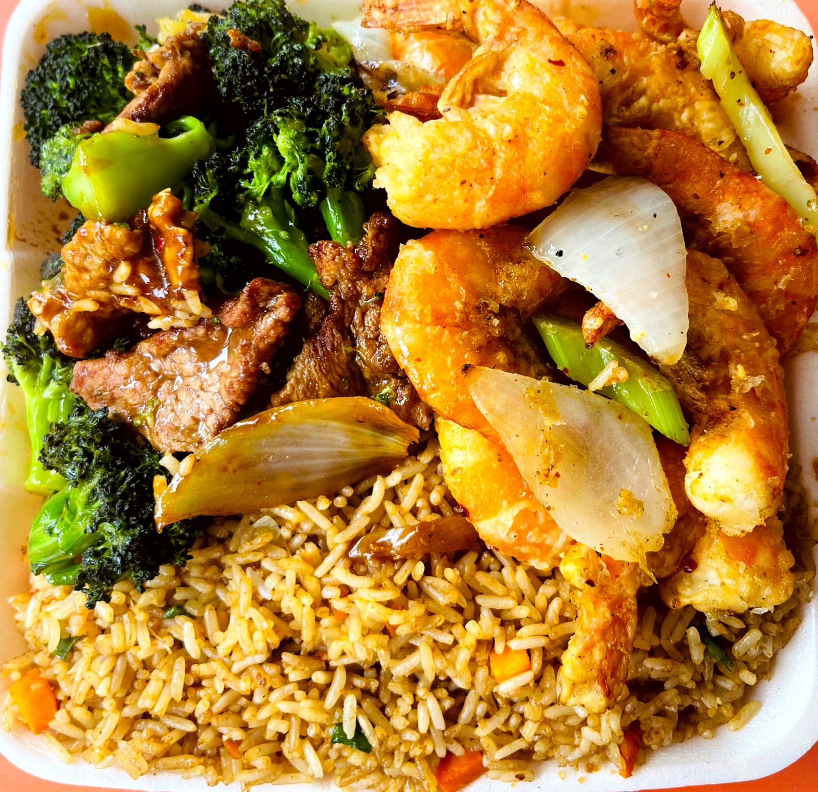 Arroz o Pasta (Grande) + Guiso (3) + Camaron