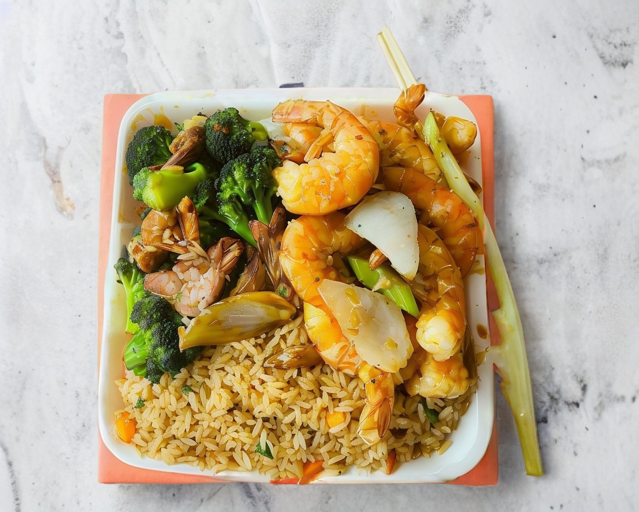 Arroz 🍚 o Pasta 🍝 + Camarón 🍤 (chico)