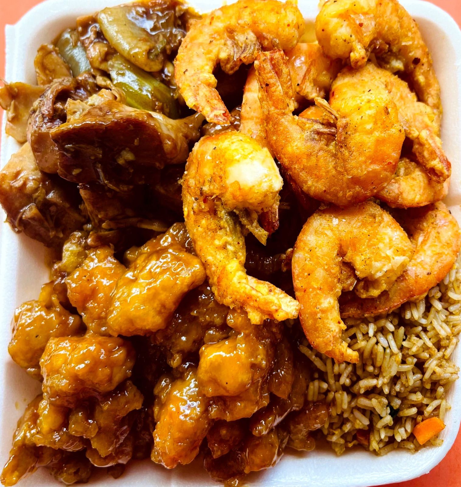 2 Guisos + Camaron con Arroz o Pasta (Grande)