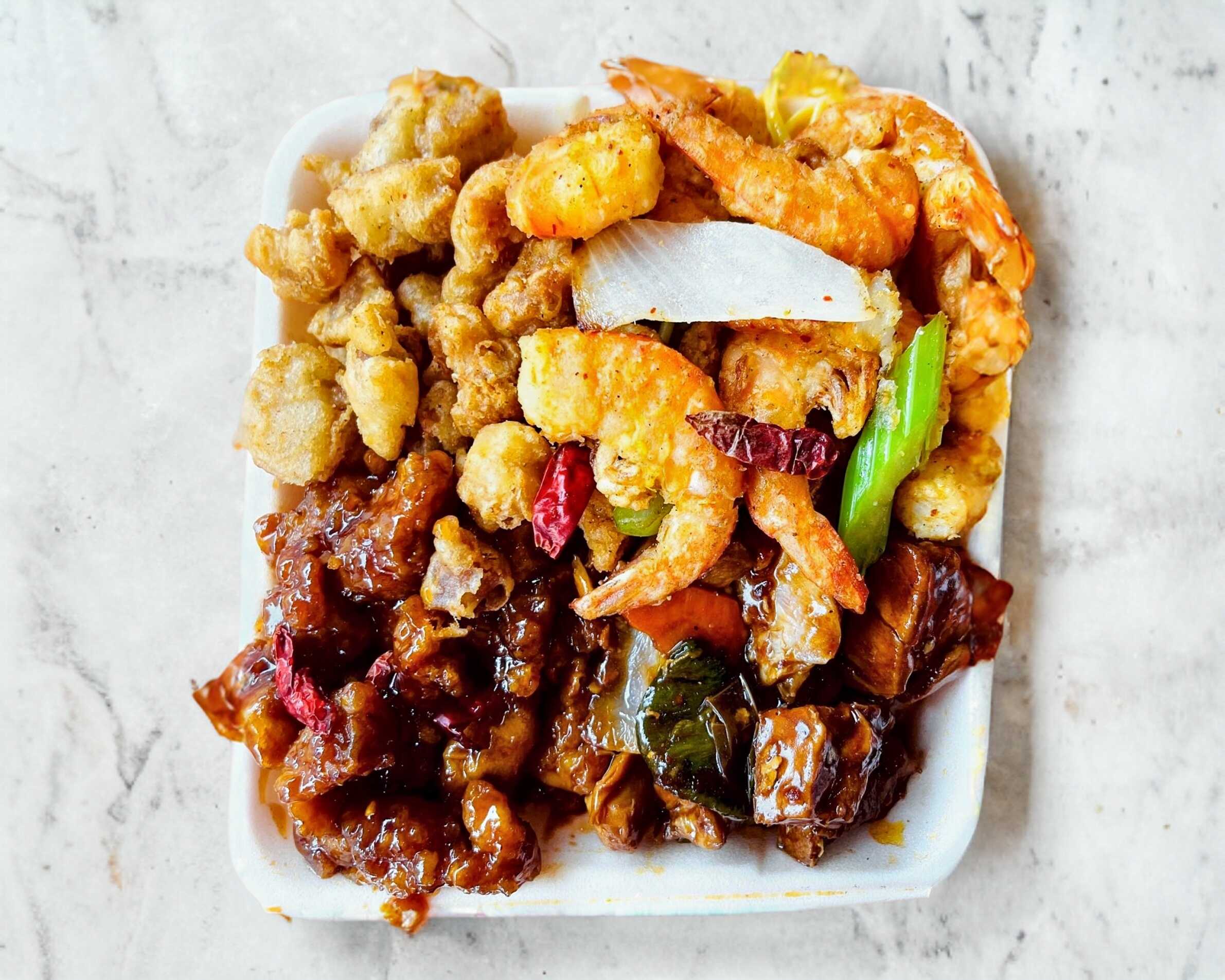 3 Guisos + Camaron con Arroz o Pasta (Grande)