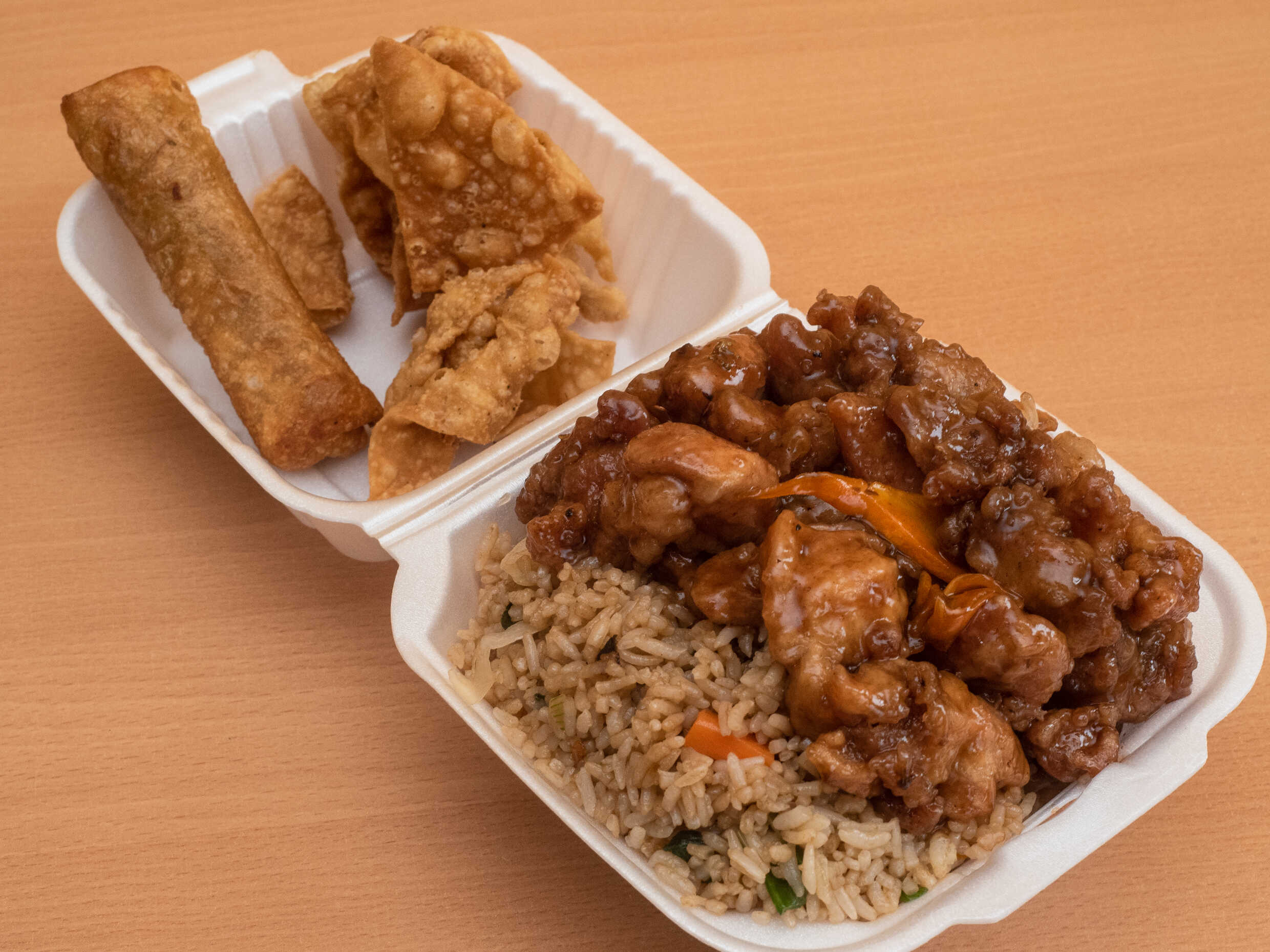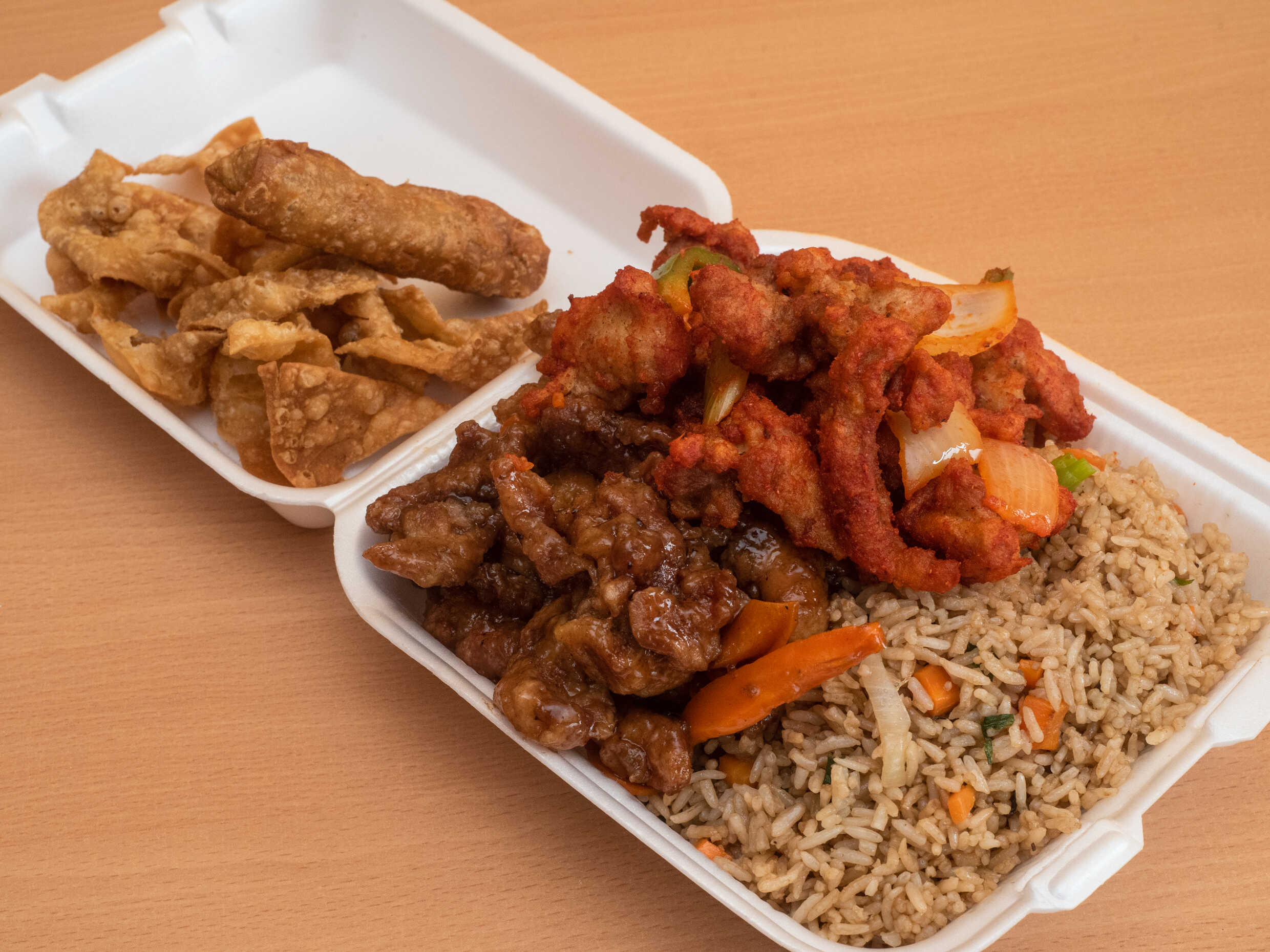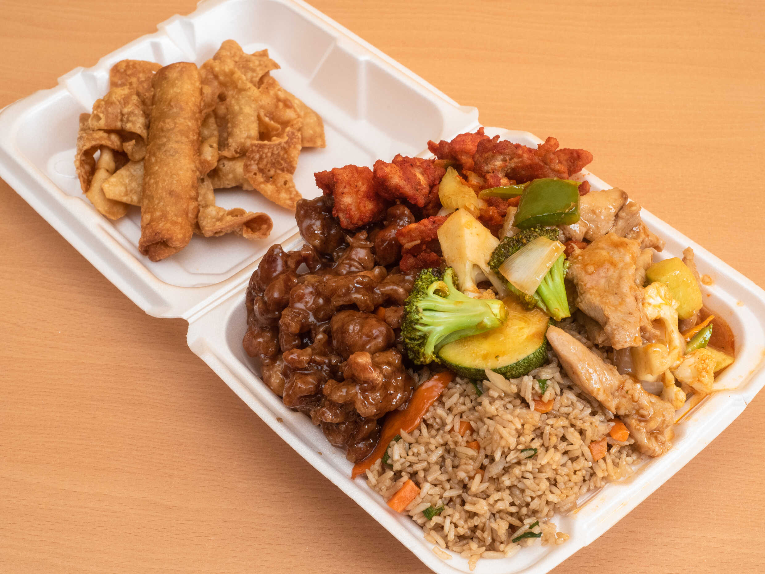 Escoge tu guarnición*1 + Camarón*1 + Guisados*2+ 1 Rollito Primavera