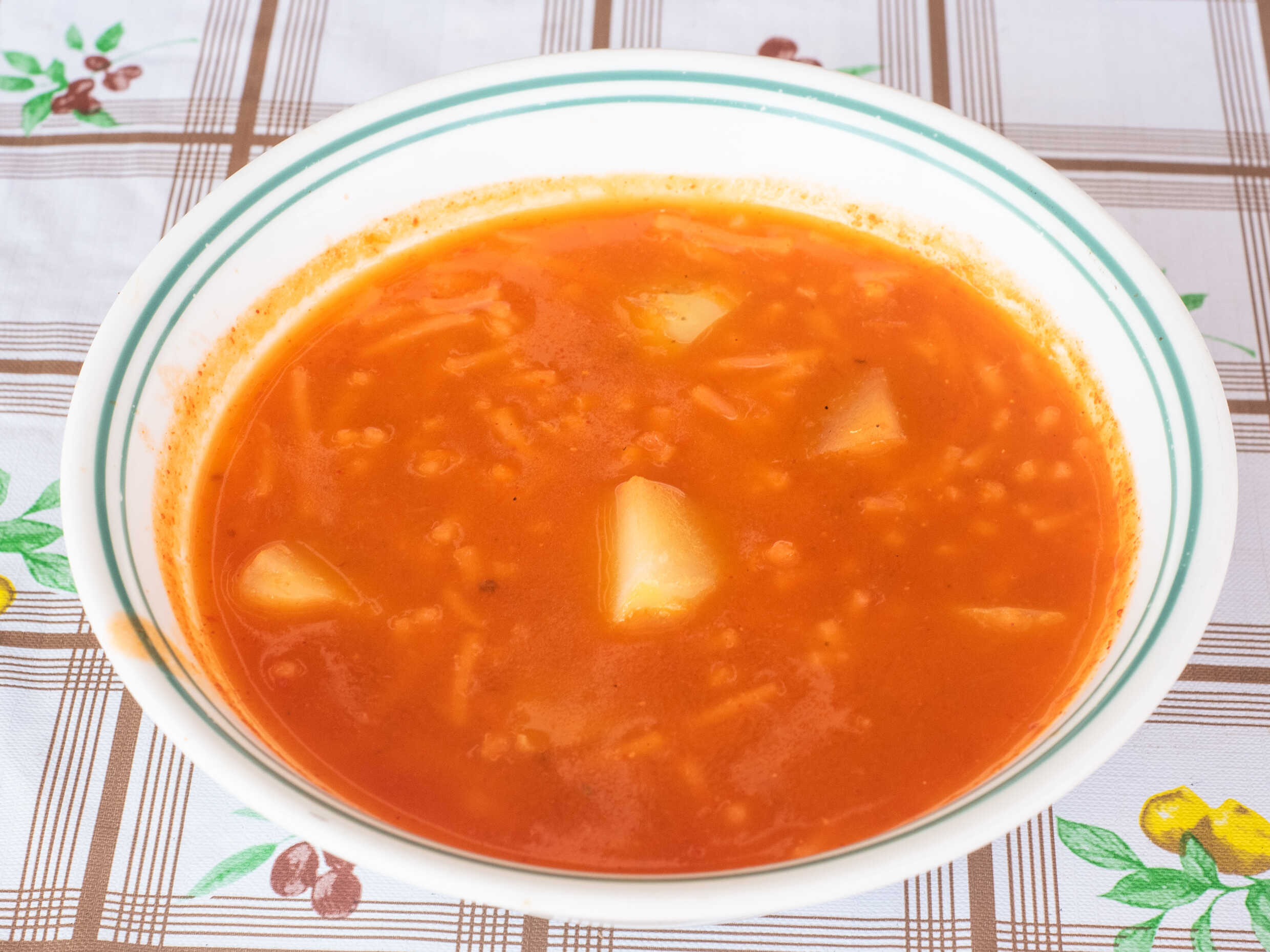 Medio litro de lentejas guisadas con tomate, cebolla, (Servilletas y cubiertos)