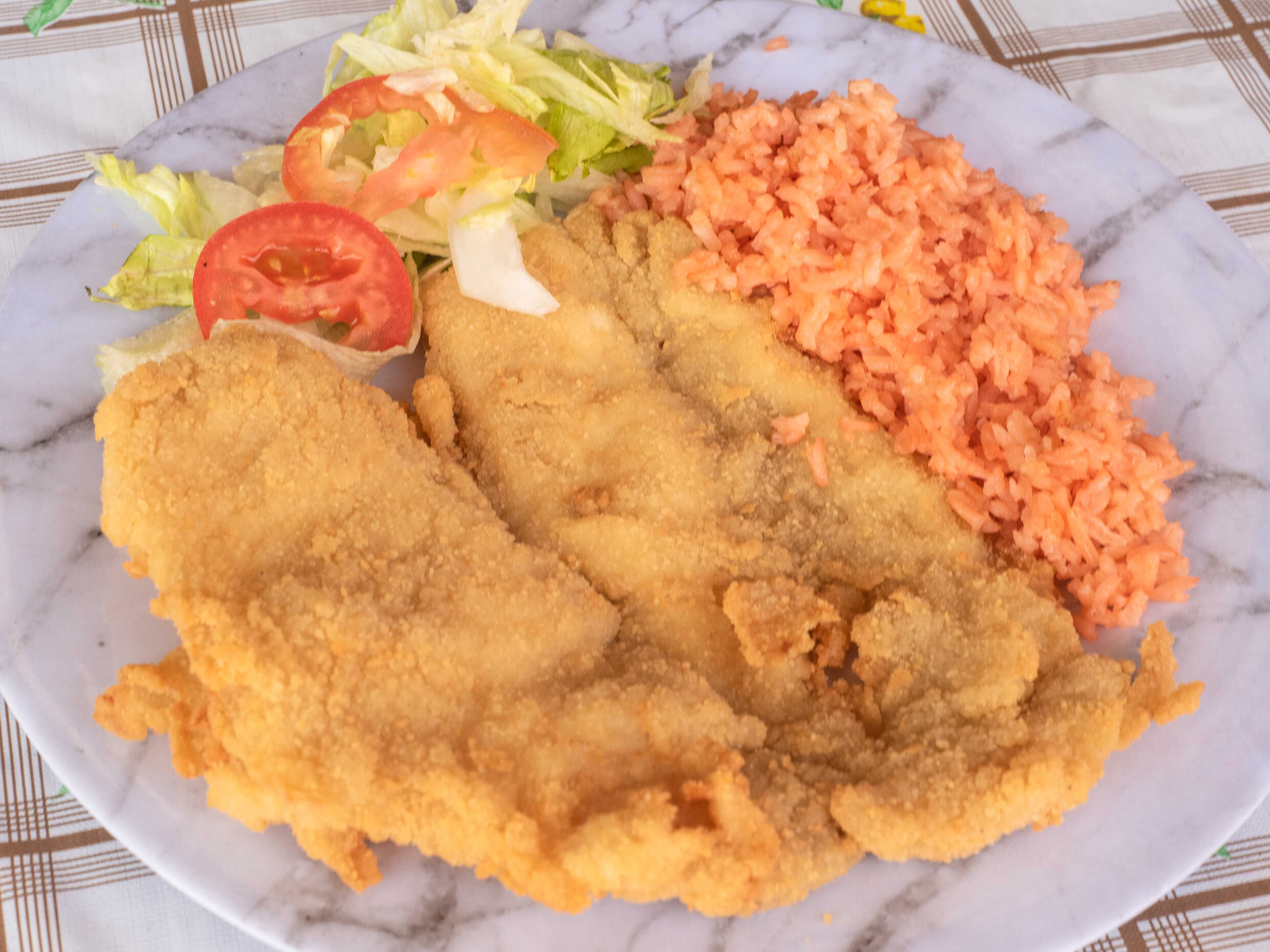 1 Filete de pescado empanizado y frito, aderezo de la casa, salsa botanera, galleta salada y 2 complementos a elegir.