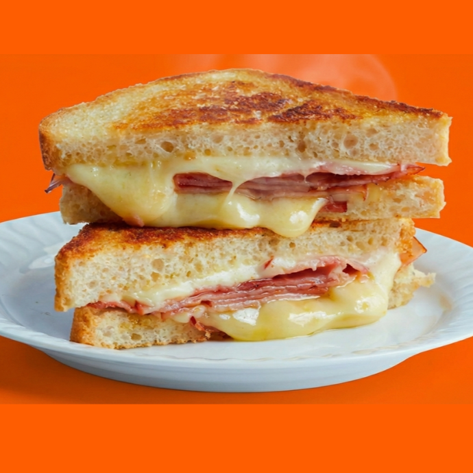 Pan Blanco con delicioso Jamón y queso derretido, salsa casera y 2 complementos a elegir