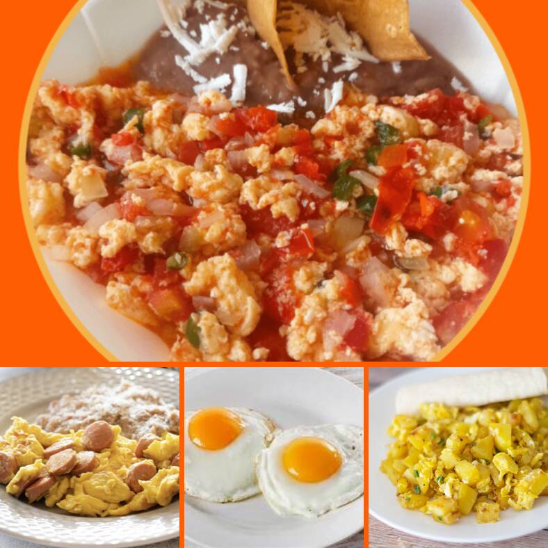huevos preparados a su elección, acompañados con tortilla, salsa y dos complementos a Elegir