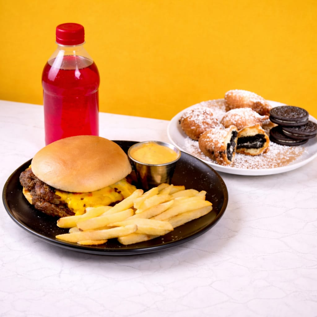 OREO BITES*1 + Agua de jamaica 500 ml*1 + SMASHED CHEESE BURGUER 100GR*1