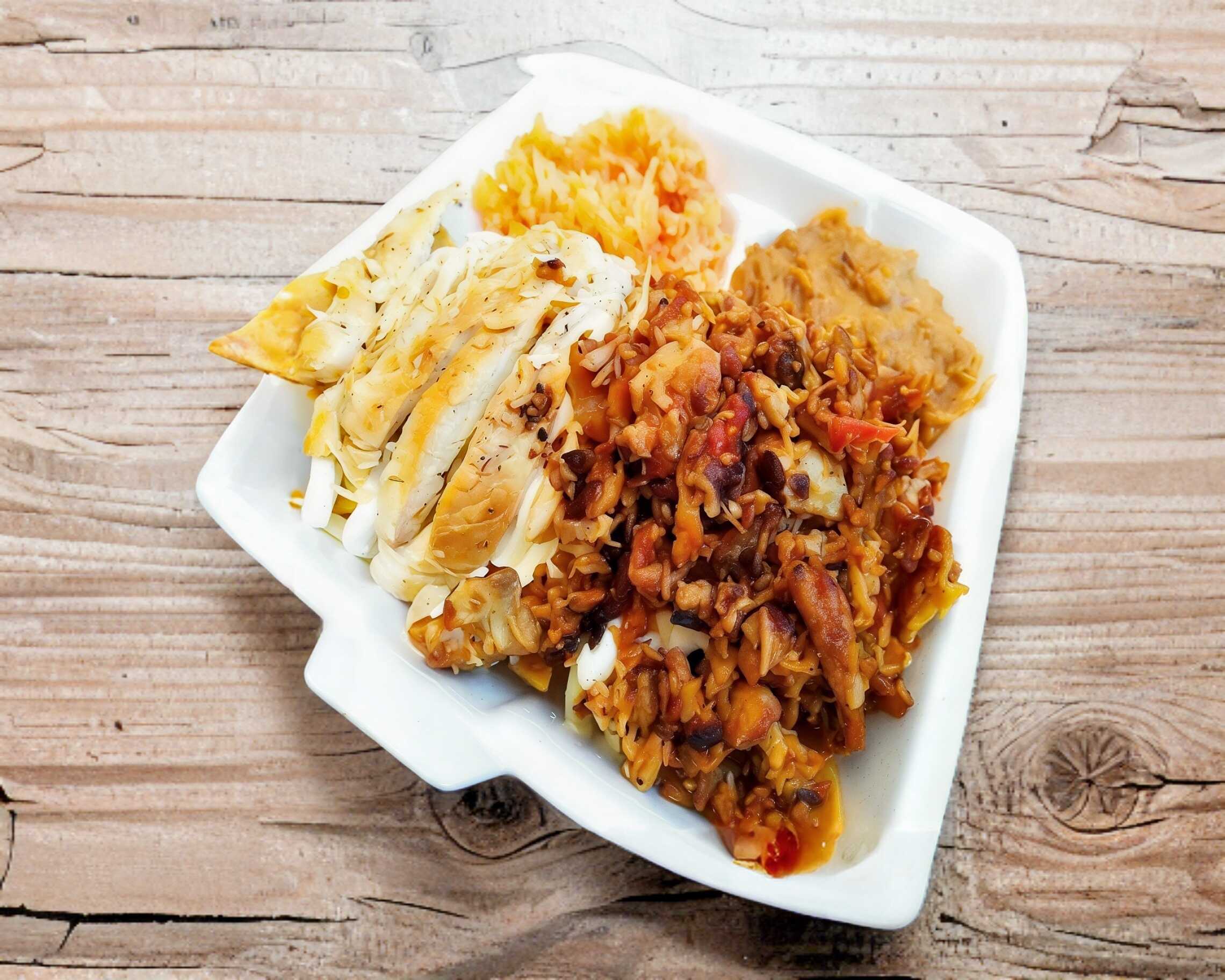 Orden de 5 (La salsa se envía aparte), acompañado de 2 guarniciones a elegir (Puré y spaghetti o arroz y frijoles), ensalada de lechuga.