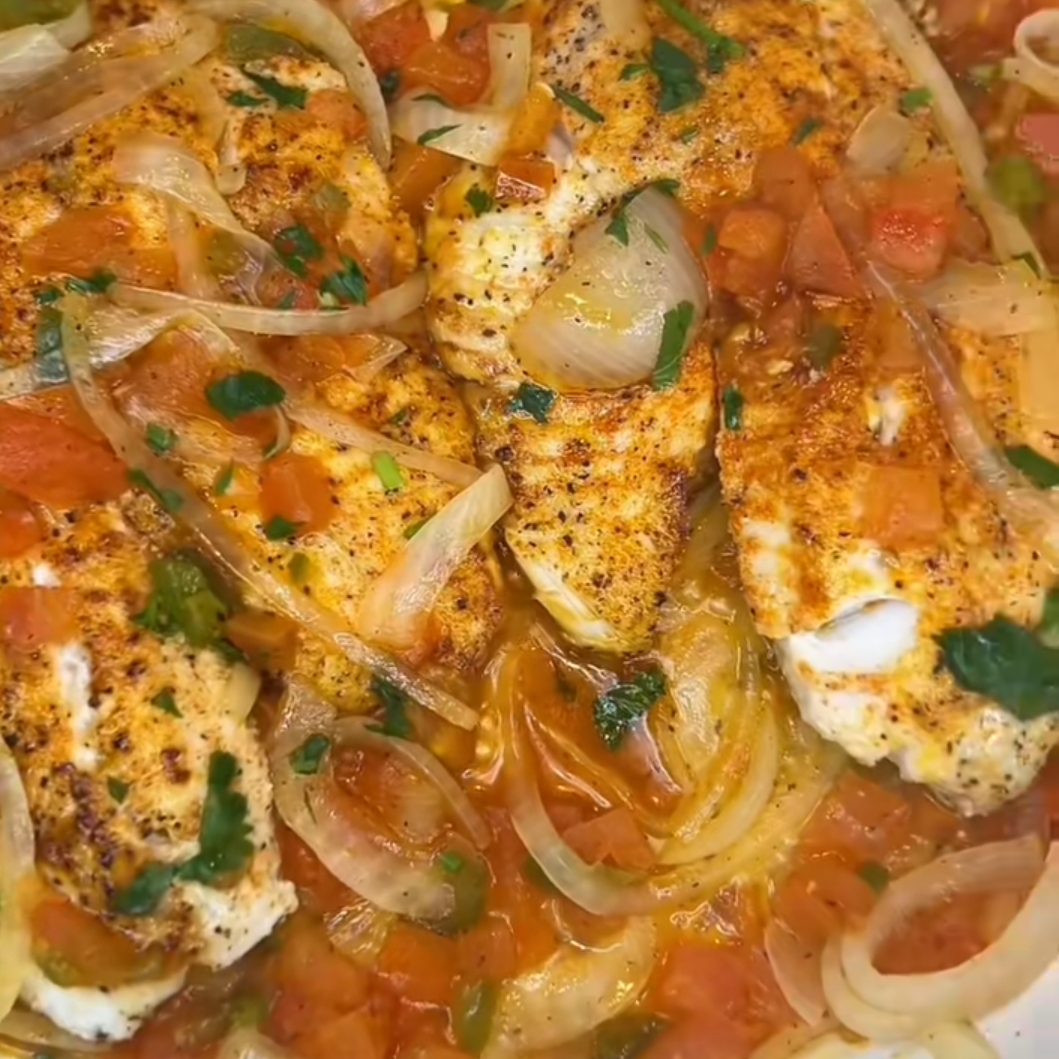 Pescado tilapia con pico de gallo,arroz, papas a la francesa y ensalada