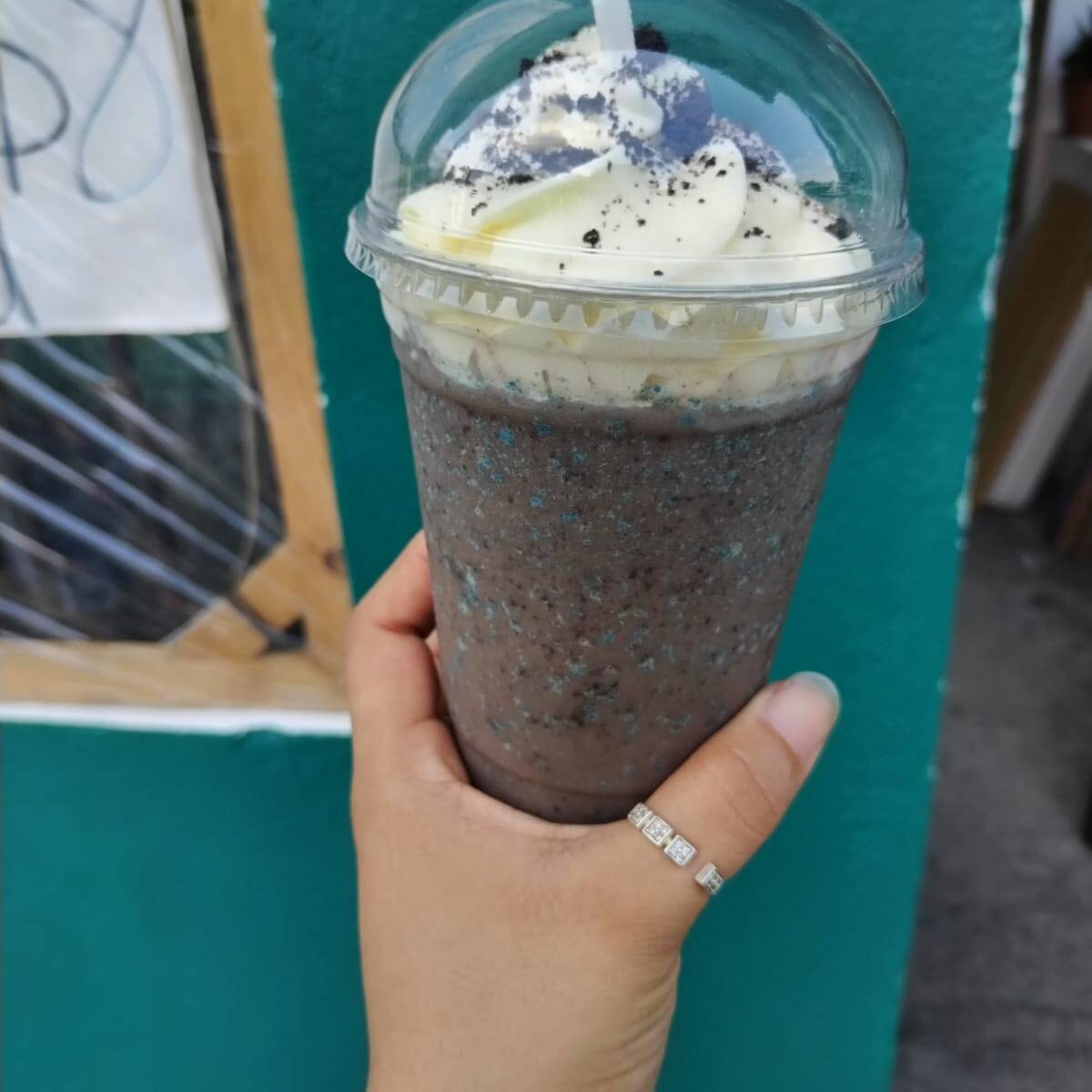 Delicioso y cremoso Frappé sabor Oreo, cubierto con crema batida.