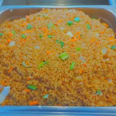 Elige tus dos guisos favoritos, acompañados de arroz frito o espagueti y camarones.
