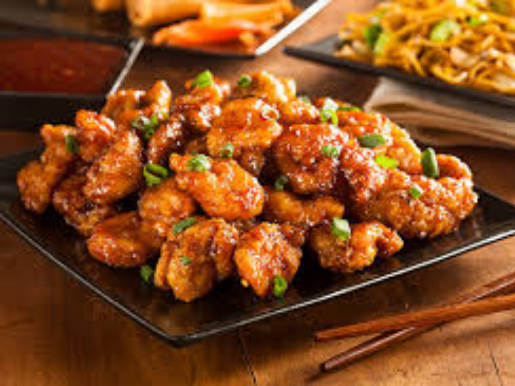 1 Guiso (pato), camarones salteados en salsa oriental, servidos con arroz y pasta.