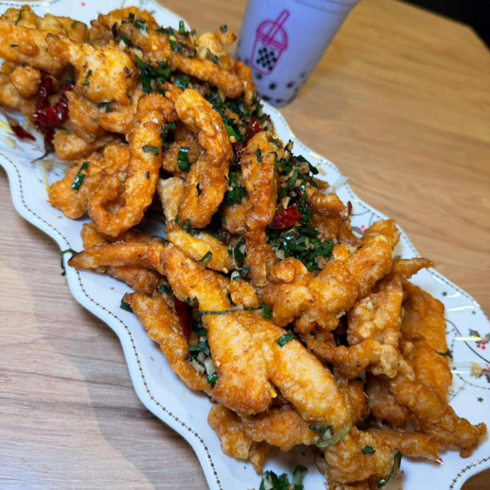 Pequeñas bolitas rellenas con pulpo, jengibre encurtido, migas de tempurta (tenkatsu).