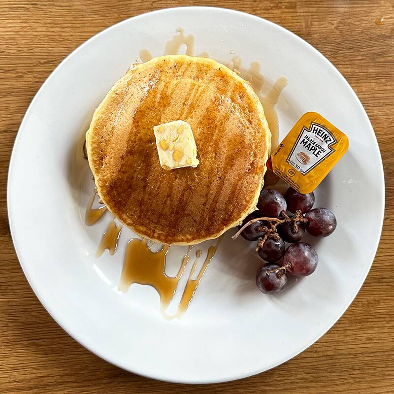 2 piezas de hot cakes grandes con mantequilla y miel