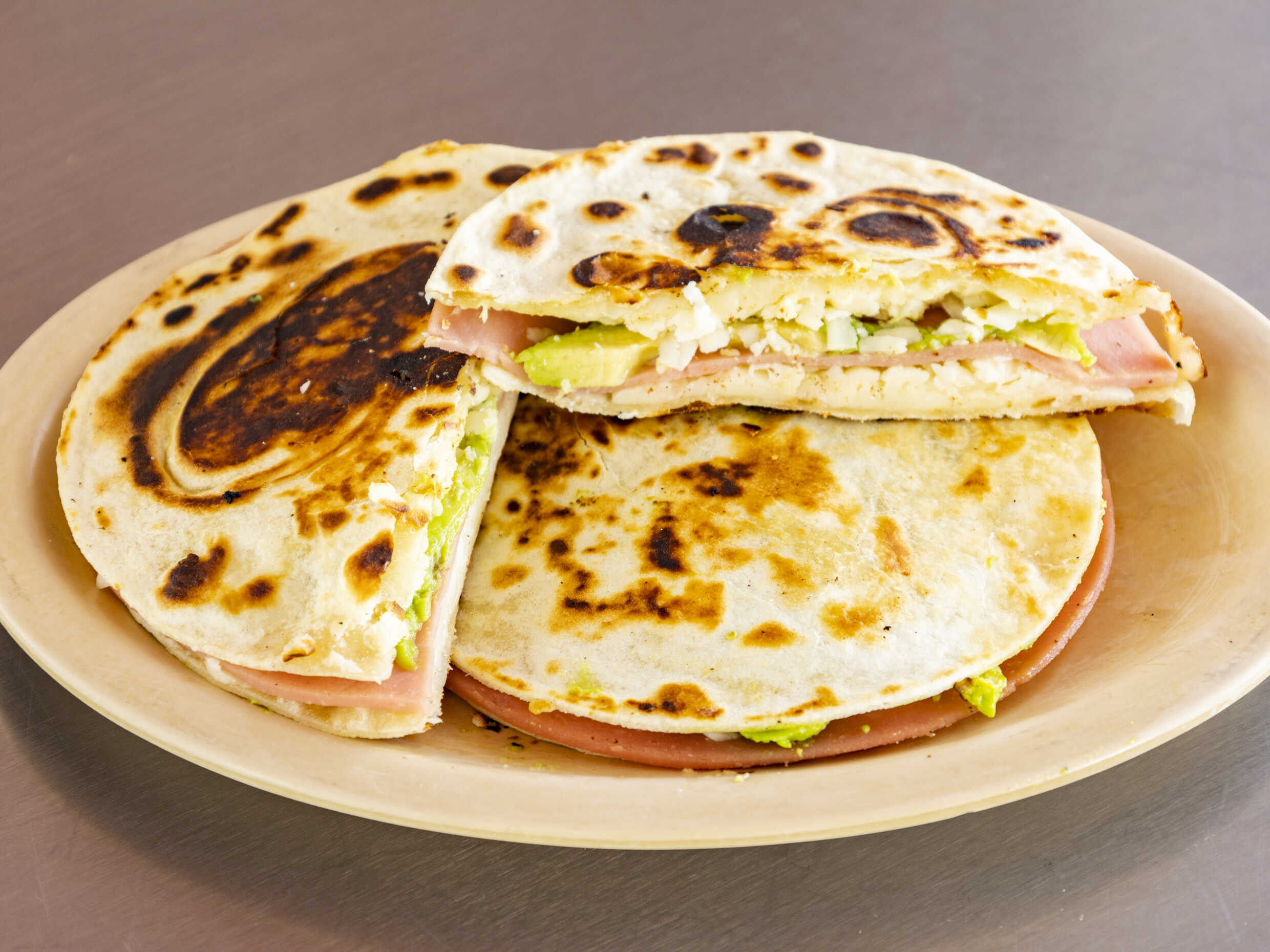 Sincronizada hecha en tortilla a elegir, jamon, queso asadero y aguacate. (1 pza)