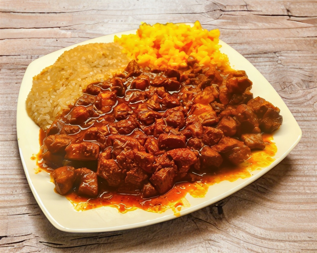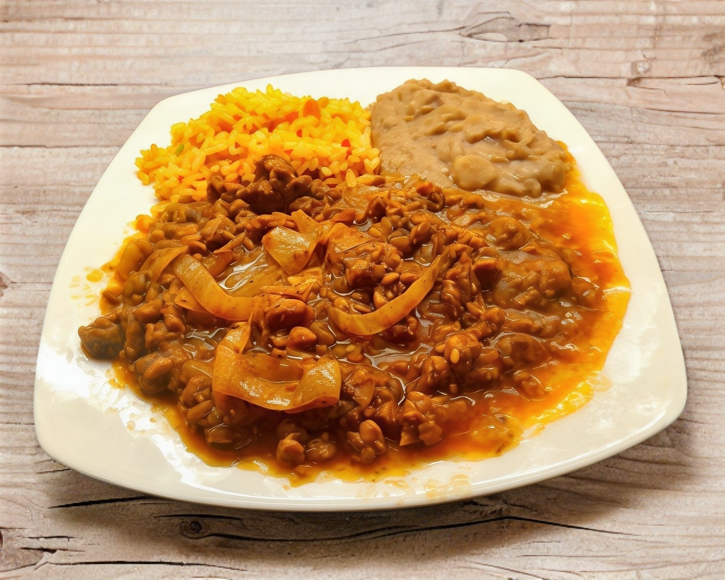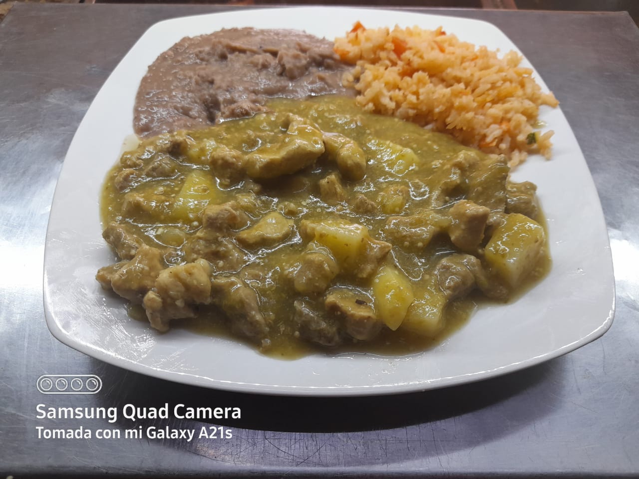 Acompañado de arroz, frijol, tortillas y salsita casera.