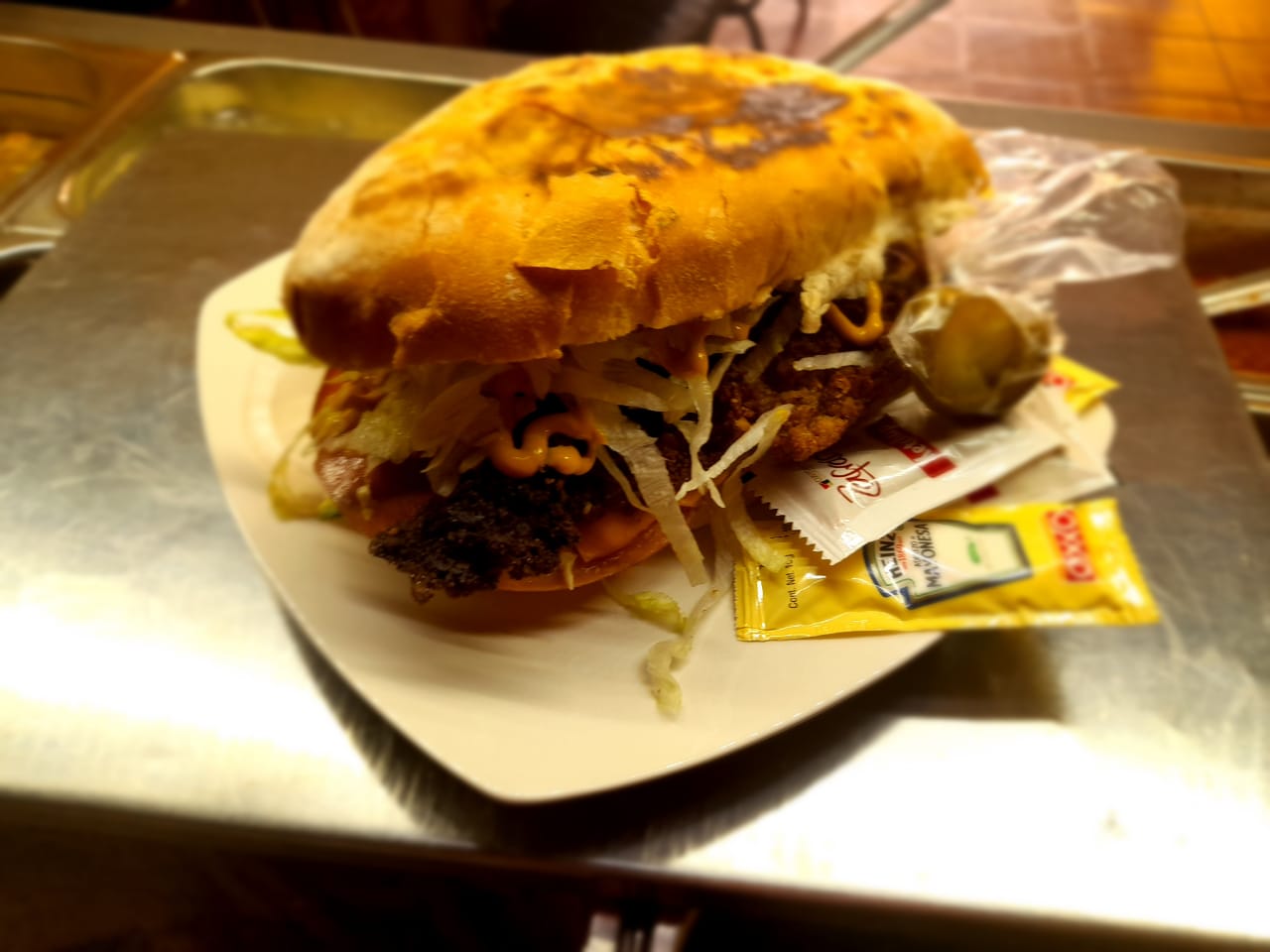 Carne de arrachera, jamón, queso, lechuga, tomate, aguacate, cebolla y aderezos.