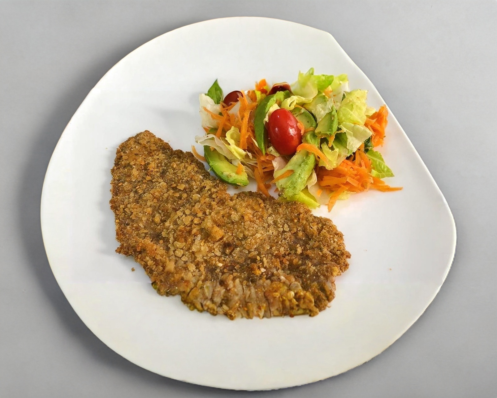 Rica milanesa de res, acompañado de 2 guarniciones y tortillas.