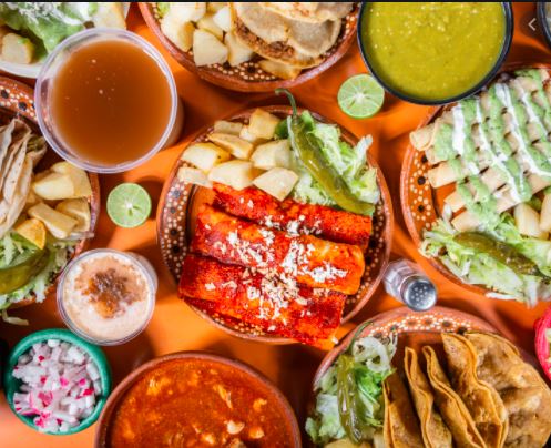 3 Enchiladas Suizas, 2 Enmoladas, incluye Frijoles y Arroz