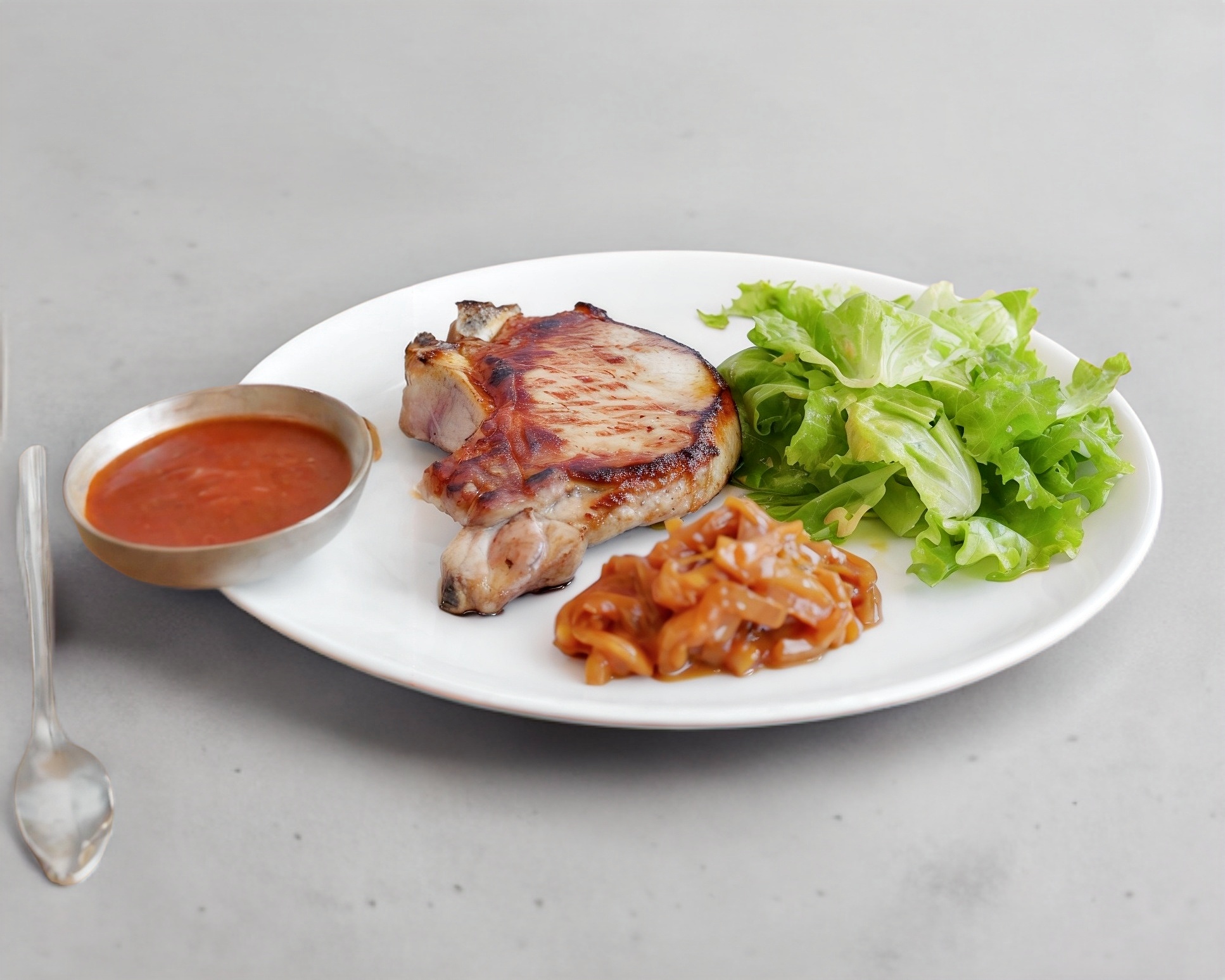 Ricas chuletas de puerco acompañado de 2 guarniciones.