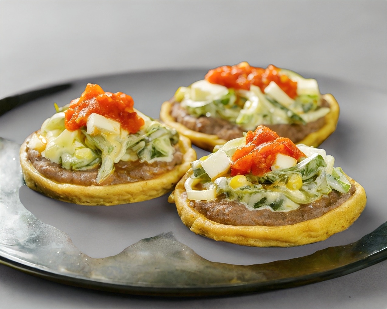 5 Sopes recién hechos con lechuga, tomate, queso panela, papa y zanahoria.