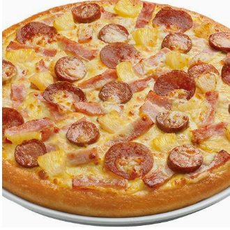 Pizza Mediana Masa Delgada La Legendaria, con pepperoni, salchicha de Costco y jamón. Piña a tu gusto.