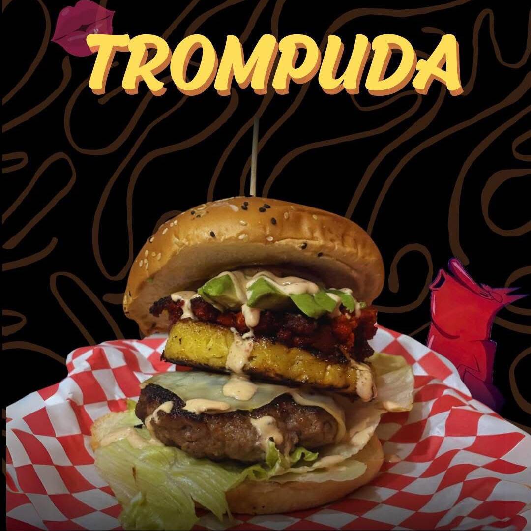 Pan Brioche, Carnita Mamalona, Queso Manchego, Tomate, Lechuga, Piña Natural, Trompo, Guacamole y Aderezo de la Casa.