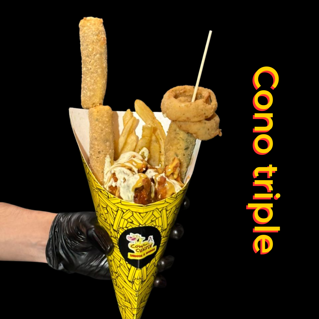 280g de papas a la francesa acompañadas de boneless, 2 cheese sticks crujientes, 2 jalapeños pop y 2 aritos de cebolla.