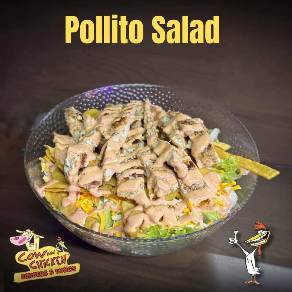 Delicioso pollo a la plancha servido sobre mix de lechugas frescas, acompañado de mix de quesos, cebolla y tomate, tiras de tortilla frita crujientes, aguacate cremoso y aderezo de la casa.
