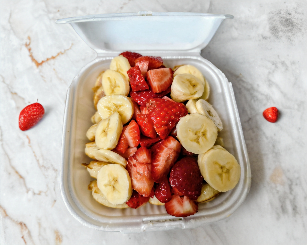 21 mini hotcakes preparados con fresa natural y plátano