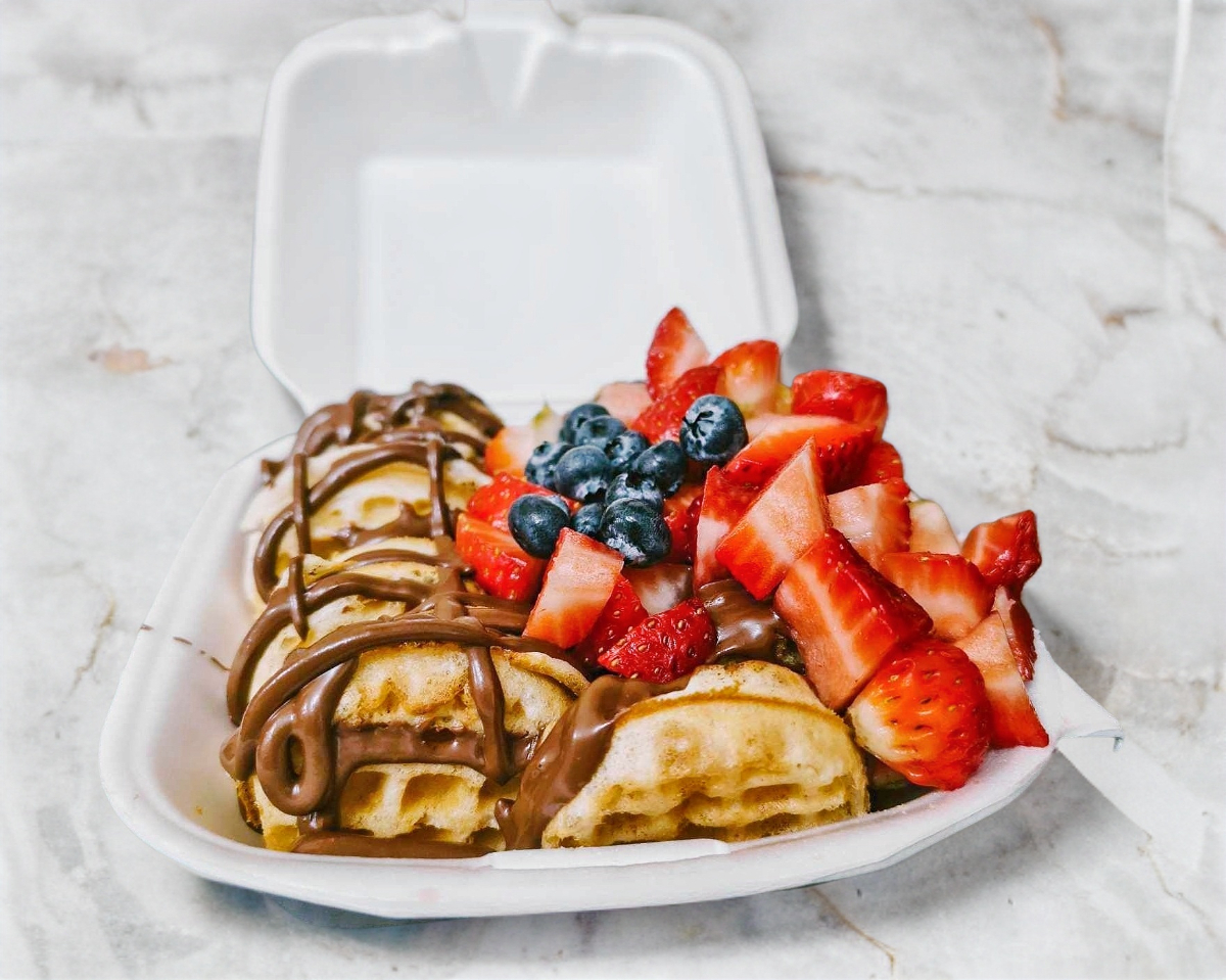 Mini Waffles Lechera con Fresa y Blueberry