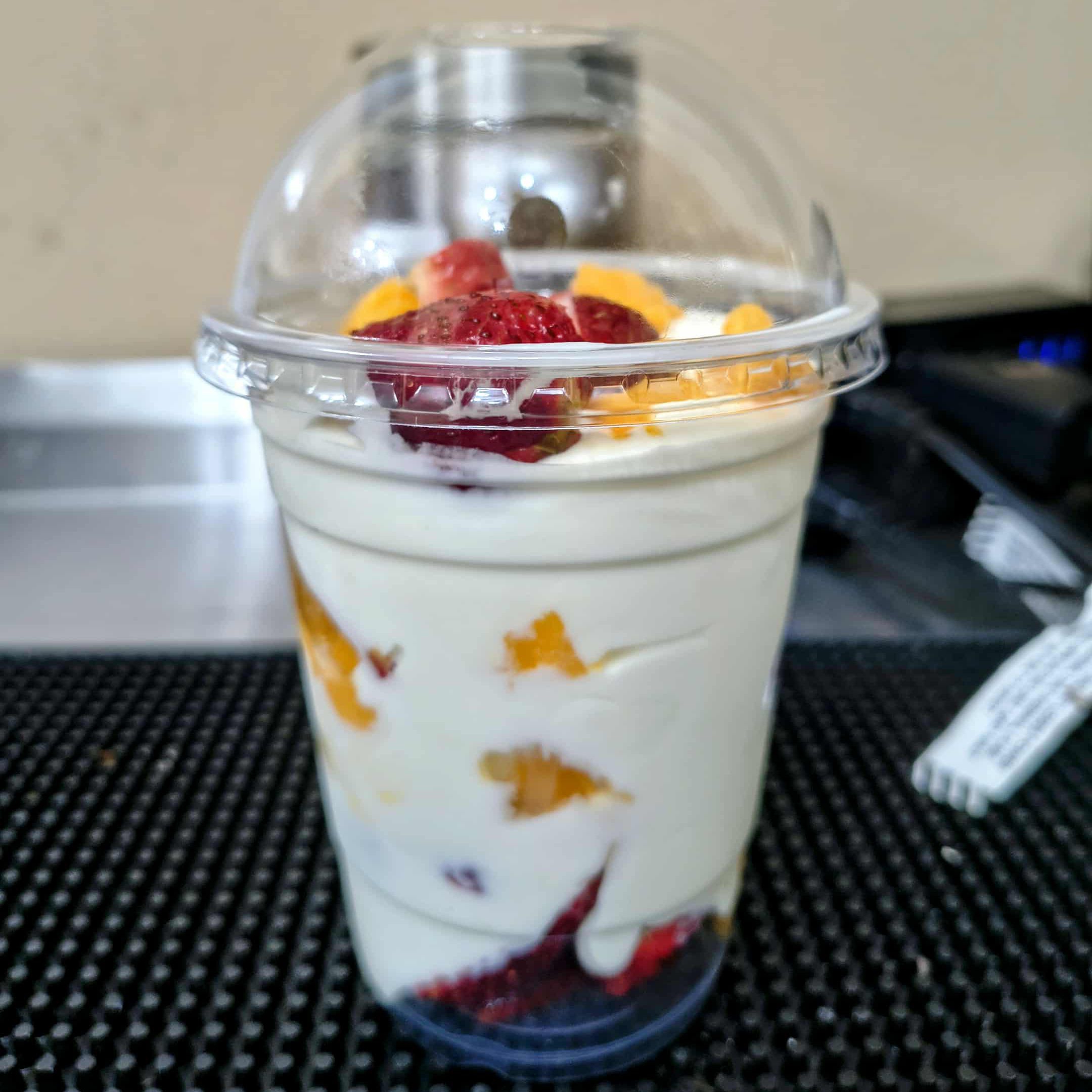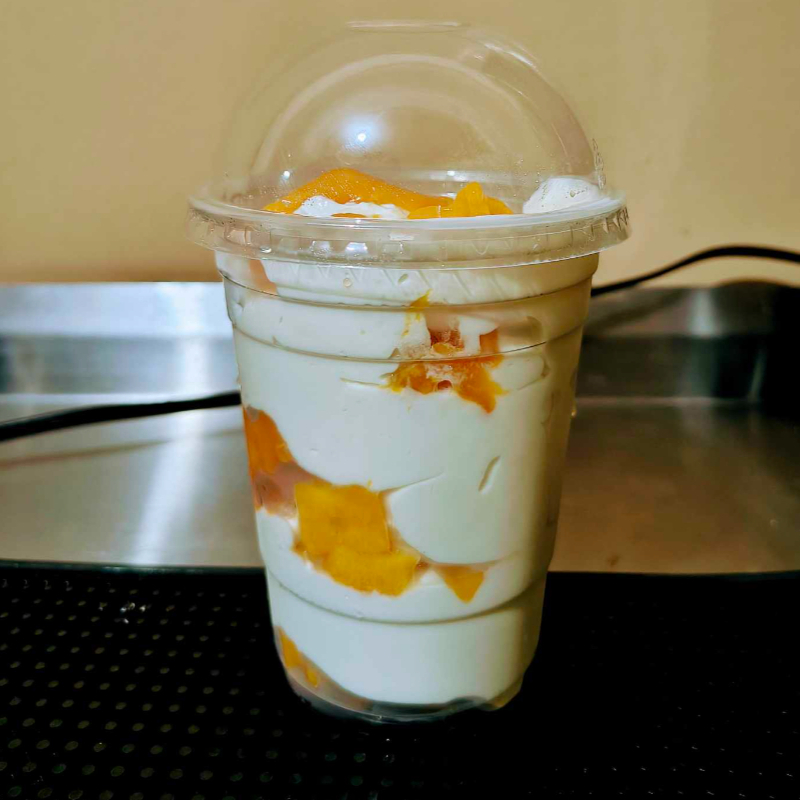 Delicioso mango natural con crema casera realizada por nosotros vaso de 16 onz