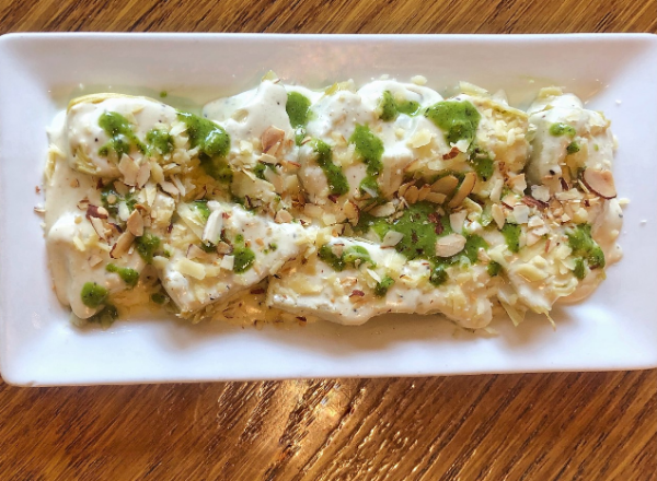 Corazones de alcachofas bañados en salsa cremosa 4 quesos de la casa