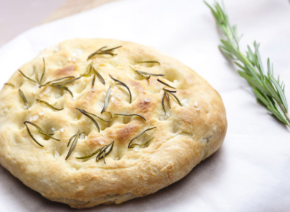 Masa esponjosa, ataviada con hierbas aromaticas y aceite de oliva