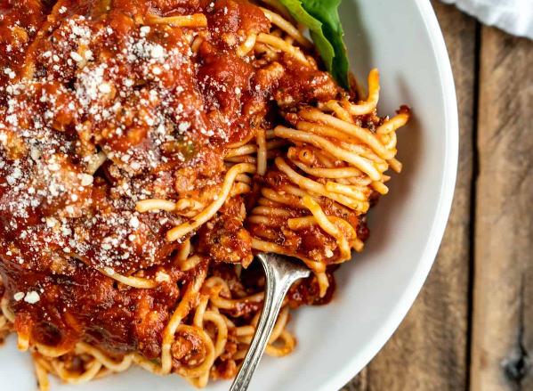 La clasica italiana, salsa a base de carne de res, tomate, zanahoria y vino tinto