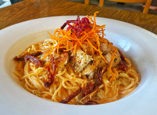 Spaguetti en salsa rosa de perfecta combinación entre cremosidad y pomodoro de la casa