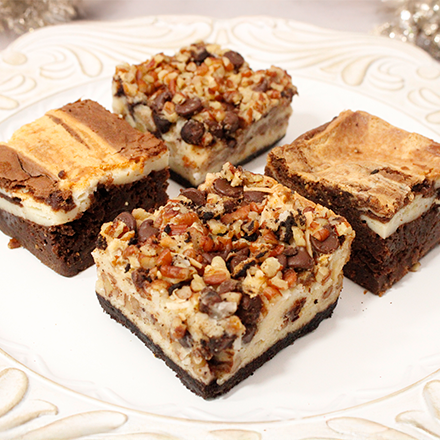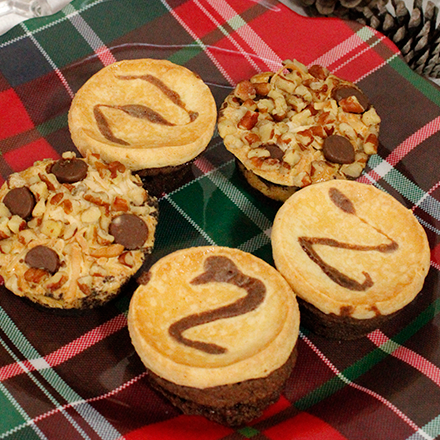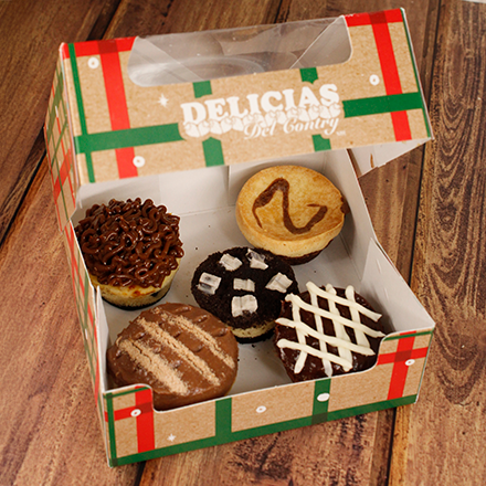 Caja con 5 mini brownies surtido de chocolate con queso y mini kiss