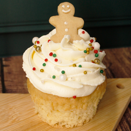 Pan vainilla relleno de sprinkles navideños y cubierto con betun de mantequilla