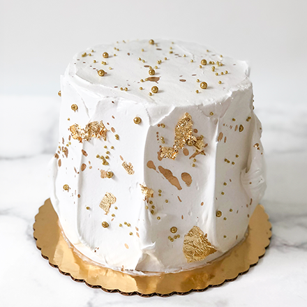 Pan vainilla relleno de mermelada de fresa con nuez, decorado con merengue italiano.