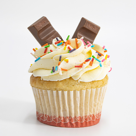 Cupcake ligeros sabor vainilla rellenos de dulce de leche.
