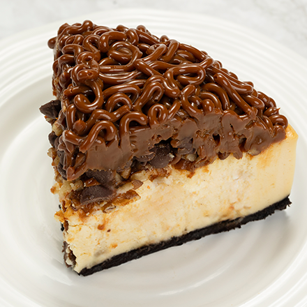 Es un postre que combina una base de cheesecake con una capa de pan de vainilla. Tiene una cobertura y relleno de chocolate con crema de queso y un topping de rocas de auténtico CRUNCH®.