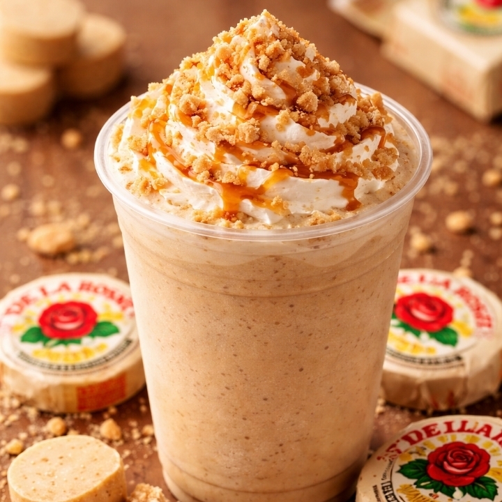 Delicioso frappé sabor gansito marinela con crema batida (16 onzas).
